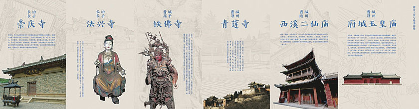 晋东南线:府城玉皇庙、西溪二仙庙、青莲寺、铁佛寺、法兴寺、崇庆寺、观音堂、龙门寺、原起寺、大云院、天台庵等11个景点。