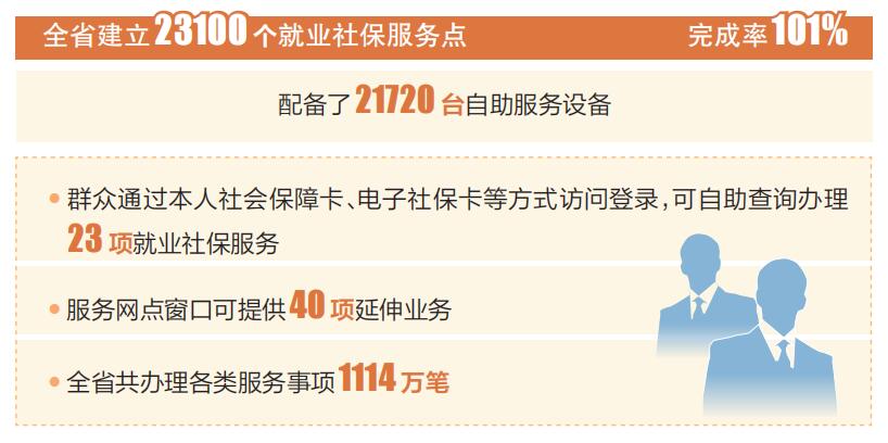 党的二十大报告提出:“健全覆盖全民、统筹城乡、公平统一、安全规范、可持续的多层次社会保障体系。”为了让人民群众在家门口就能享受到高质量的人社服务,我省将就业社保服务社区村村全覆盖工作确定为今年的15件民生实事之一。目前,全省已建立23100个就业社保服务点,覆盖所有的乡镇(街道)综合便民服务中心和行政村(社区)便民服务站或党群服务中心,配备了21720台自助服务设备,开通了36766名工作人员权限。