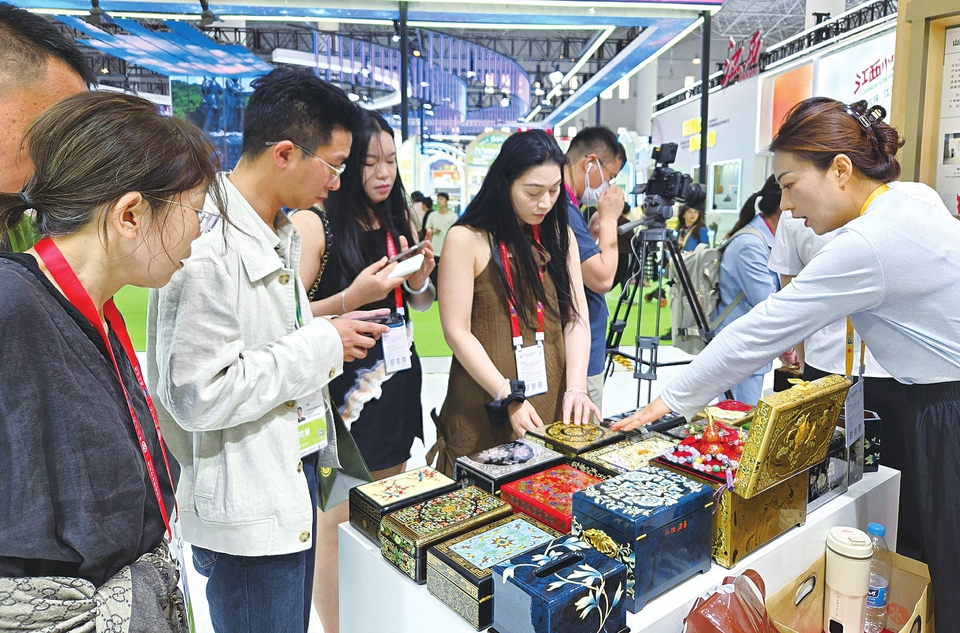 山西展区的平遥推光漆器吸引了众多客商关注的目光。