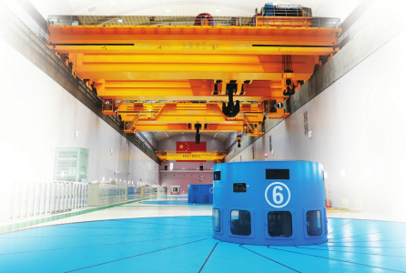 踏入这座智能化水平位居世界前列的水电站主厂房,映入眼帘的是震撼的工业图景,耳中持续回响侧排电箱发出的规律嗡鸣。厂房上空数十米处,太重研制的两台1000t桥式起重机正有条不紊地吊起巨大构件缓缓掠过高空,精准地运往指定地点。没有想象中的剧烈震颤与迟缓操作,所有动作都流畅而精准,令人赞叹。