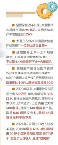 在“2024中国品牌价值评价信息”中,太重位列山西企业第一。太重向明、轨道公司、太重榆液3家单位入选国家“双百企业”“科改企业”,其中太重向明和轨道公司分别获评山西省“标杆”等级,成为当之无愧的国企改革尖兵。