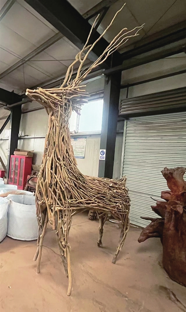 10月24日,记者在该中心看到,工作人员创作了大型鹿形展品及骆驼、袋鼠、犀牛等小型动物展品。这些作品生动精巧,充分保留了植物材料的自然美感,展现了园林废弃物的艺术潜力。将绿废转化为文创展品,不仅开辟了一条资源化利用的“新赛道”,更将环保理念融入了艺术创作,为未来园林垃圾的“变废为宝”提供了充满想象力的发展方向。这一尝试显示,绿废资源的价值挖掘正从功能层面向文化审美层面不断深化与拓展。(刘晓亮文/摄)