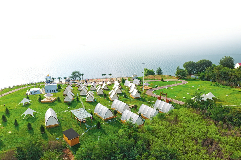 长治市漳泽湖MANA水岸度假区绿草如茵、碧波荡漾。张国平摄