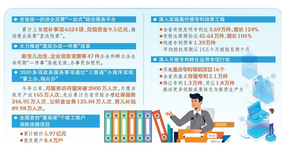 营商环境是企业生存发展的土壤。“十四五”以来,我省始终将优化营商环境作为高质量发展的关键支撑。全省市场监管系统、审批服务系统立足职能、改革创新、攻坚克难,从政务服务、数字赋能、市场监管、质量安全等多维度发力,推动全省营商环境持续优化、市场活力充分迸发,为全省全方位转型发展筑牢坚实基础。