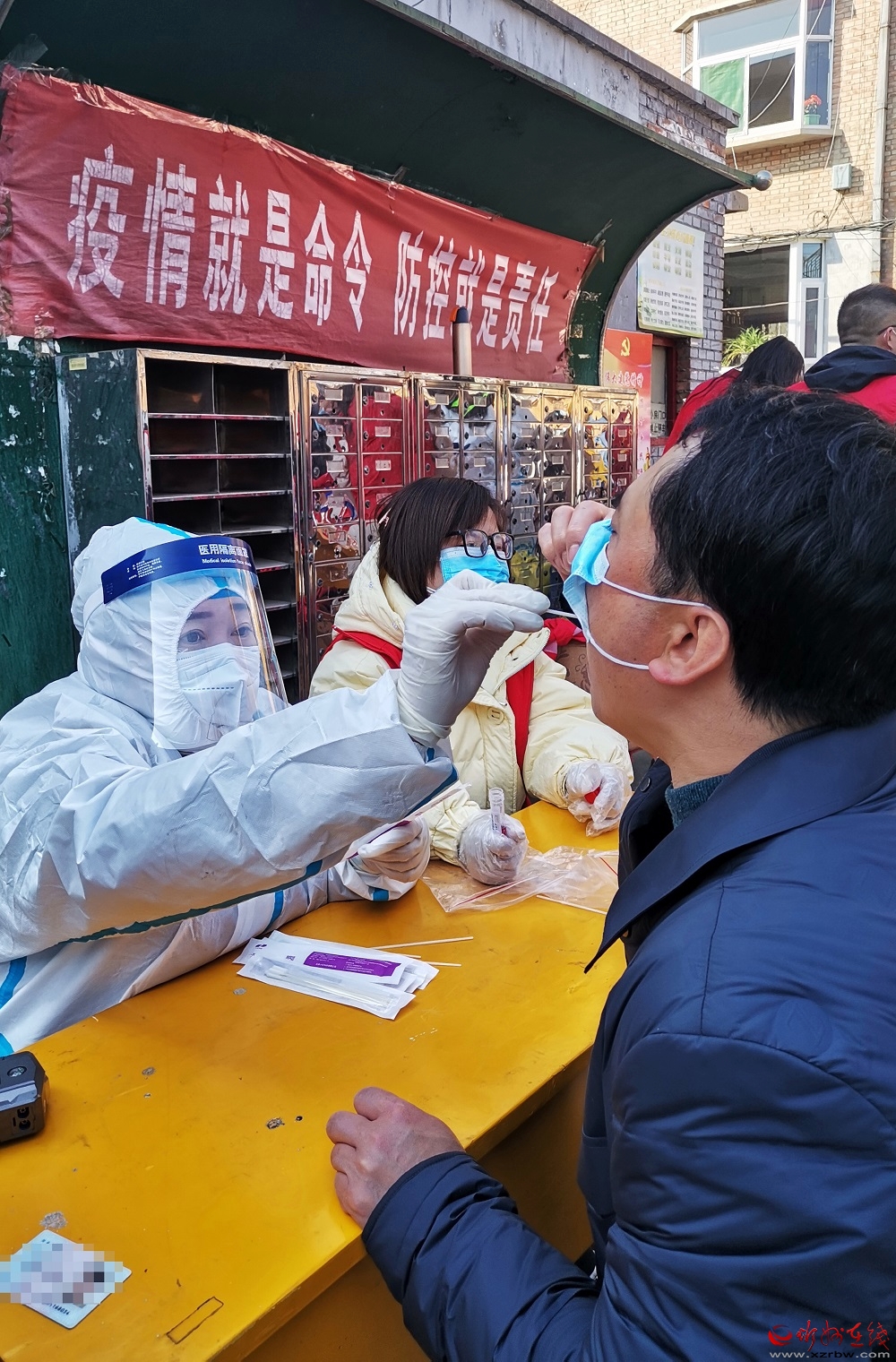 记者在城区长征西街、七一南路部分采样点看到,市民们积极配合,纷纷走出家门,佩戴口罩,保持一米线距离,在采样点前排起长长的队伍,挨个等候核酸检测。由医护人员、社区工作人员、办事处干部、村两委工作人员、志愿者组成的采样服务队伍,身穿白色防护服,头戴防护帽,正在有条不紊地按照采样规程进行核酸采样工作。