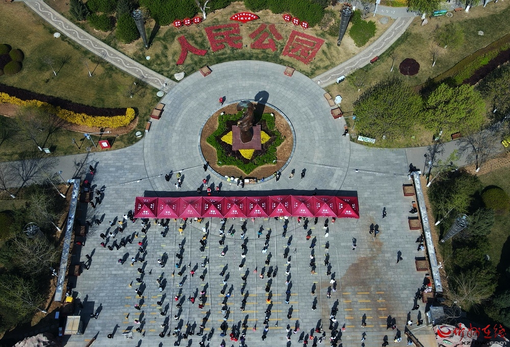 在城东片区人民公园有10个核酸采集点。上午11时,记者看到,现场约有2000余人排队前来做核酸检测。为快速有效地进行核酸检测,工作人员在现场摆放了坐凳,设置了隔离线,广大居民佩戴口罩,有序排队登记,依次进行检测。同时为了加快进度,各核酸检测点加派了医务人员,增派了一名社区工作人员或志愿者配合医务人员充当信息录入员。