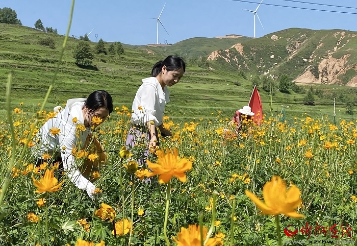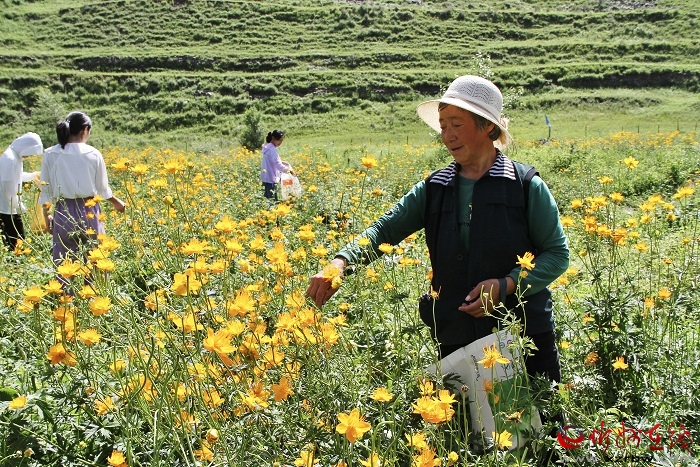 孟秋时节的汾源大地,仍然是绿意葱茏,百花盛开。忻州市宁武县东马坊乡庄旺村金莲花茶种植基地里,村民们忙着采摘、晾晒、烘干、装罐、发运,一片忙碌景象。