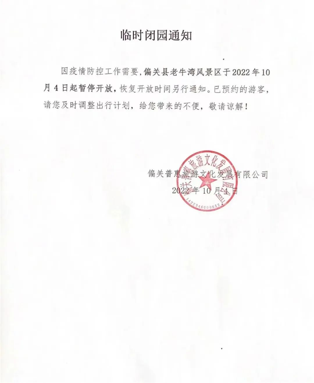 老牛湾景区临时闭园通知