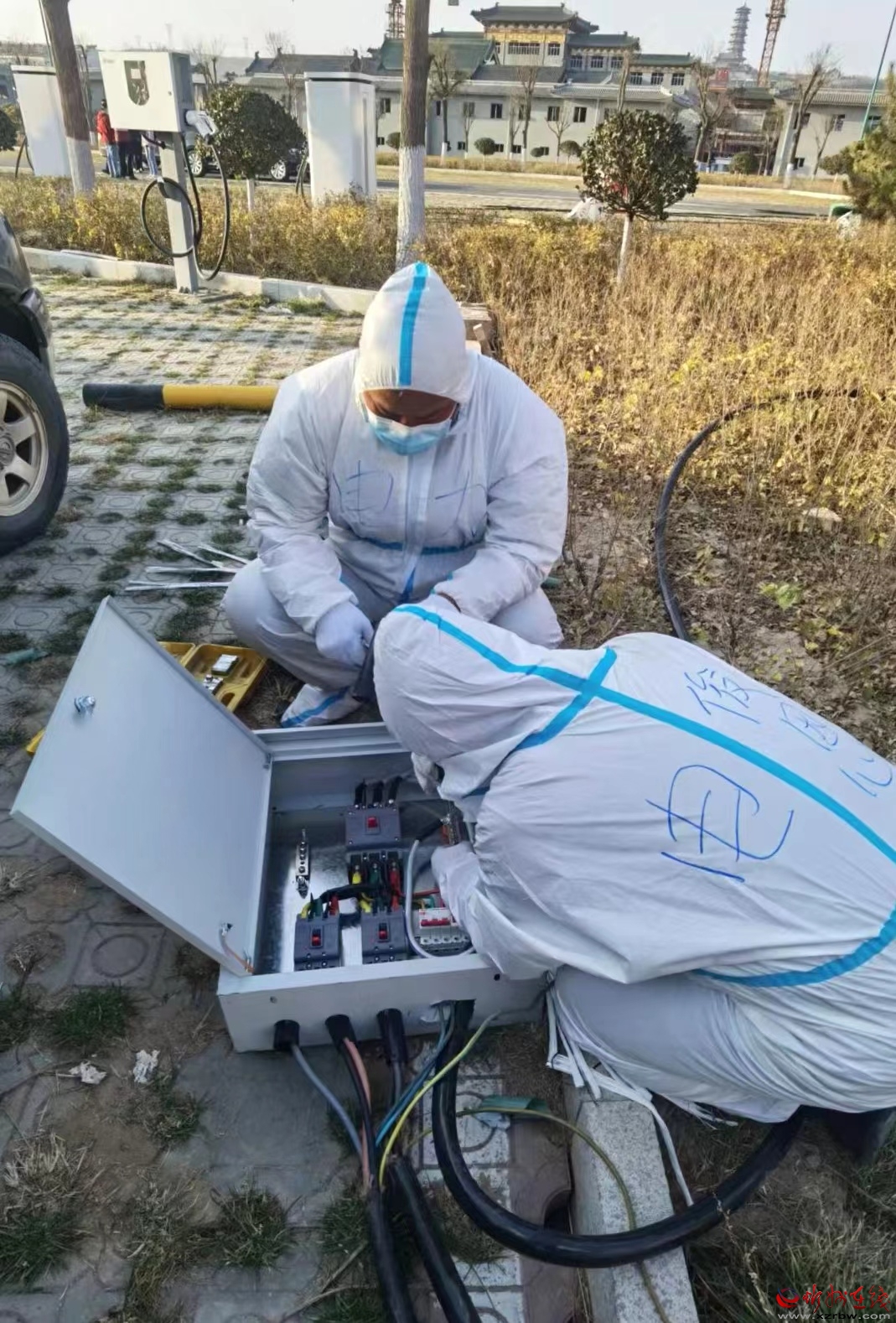 11月3日下午,兄弟市县医务人员紧急援繁,驻扎在繁峙县砂河镇憨山文化旅游景区游客中心的应急处置指挥部临时移动核酸检测基地,为保障兄弟市县医务人员的住宿用电问题,任玉梁带领12名职工齐上阵,终于在天黑前,为兄弟市县医务工作者所住的60顶帐篷全部通上电,确保了每顶帐篷内的用电需求。