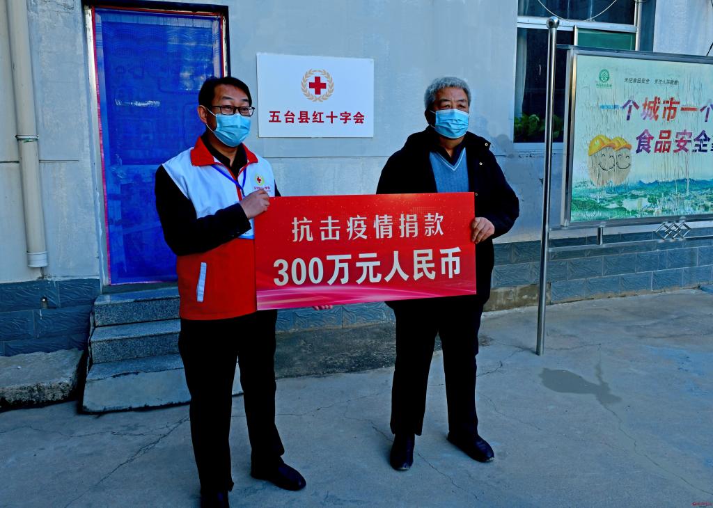 11月12日,五台县人大常委会委员、县工商联副主席、企业家杜俊光向五台县红十字会捐款300万元,用于五台县疫情防控工作。一时之间,这一消息迅速传开,成为全县佳话。