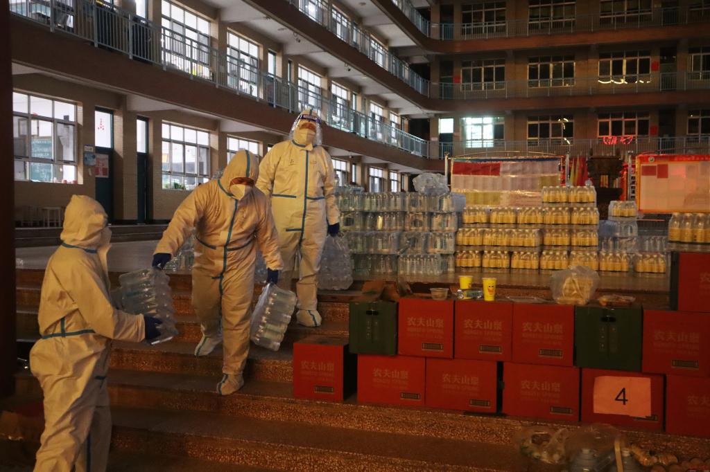 自学校采取封闭式管理以来,学生们过起了“足不出宿舍”的生活。为全力保证学生安全和正常饮食,忻州一中老师在承担起日常学校工作的同时自觉化身抗疫“大白”照料学生们的日常生活。由于人数较多,为学生们送饭成为了一天中比较繁重的工作。80后教师张高强是此次参加疫情防控的教师志愿者之一,从学校开展疫情防控起,就带头进入校内隔离点。每天都要穿梭在宿舍楼中为学生们送饭,“这种时候,我们可能没有办法做到让每个人都满意,但是我们可以保证的是,让每一个学生都能感觉到我们老师一直和他们在一起。”朴实的话语道出了最真挚也最温暖的心声。