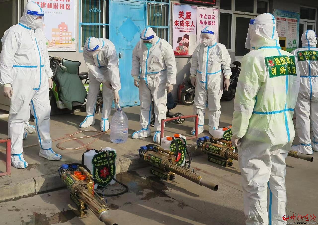 忻府区突发疫情以来,为切实加强疫情防控工作、有效消毒消杀、阻断疫情传播,忻州市退役军人利剑应急救援队秉承“退伍不褪色、退役不褪志、当兵做贡献、退役做奉献”的志愿服务理念,连续20多天积极配合相关部门深入忻府区各社区、机关、公共活动场所、村庄和疫情防控各片区,开展全方位、无死角的消毒消杀活动,努力阻挡新冠病毒肆虐传播,充分展现了新时代忻州退役军人的风采。(鲁明强)