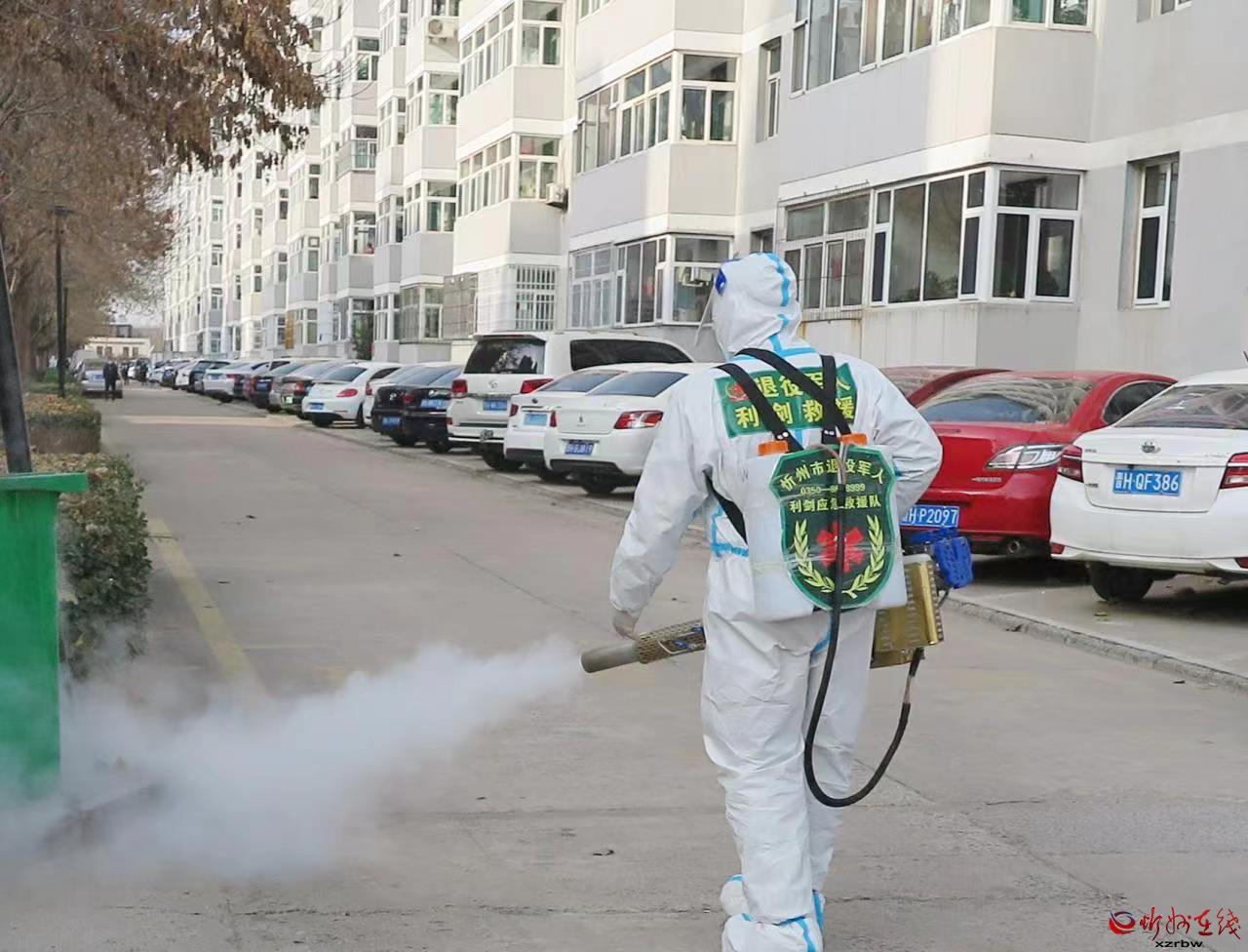11月27日,忻州市退役军人利剑应急救援队的队员们来到忻府区九原西街惠民小区,开展了一次全方位、无死角的消毒消杀活动。