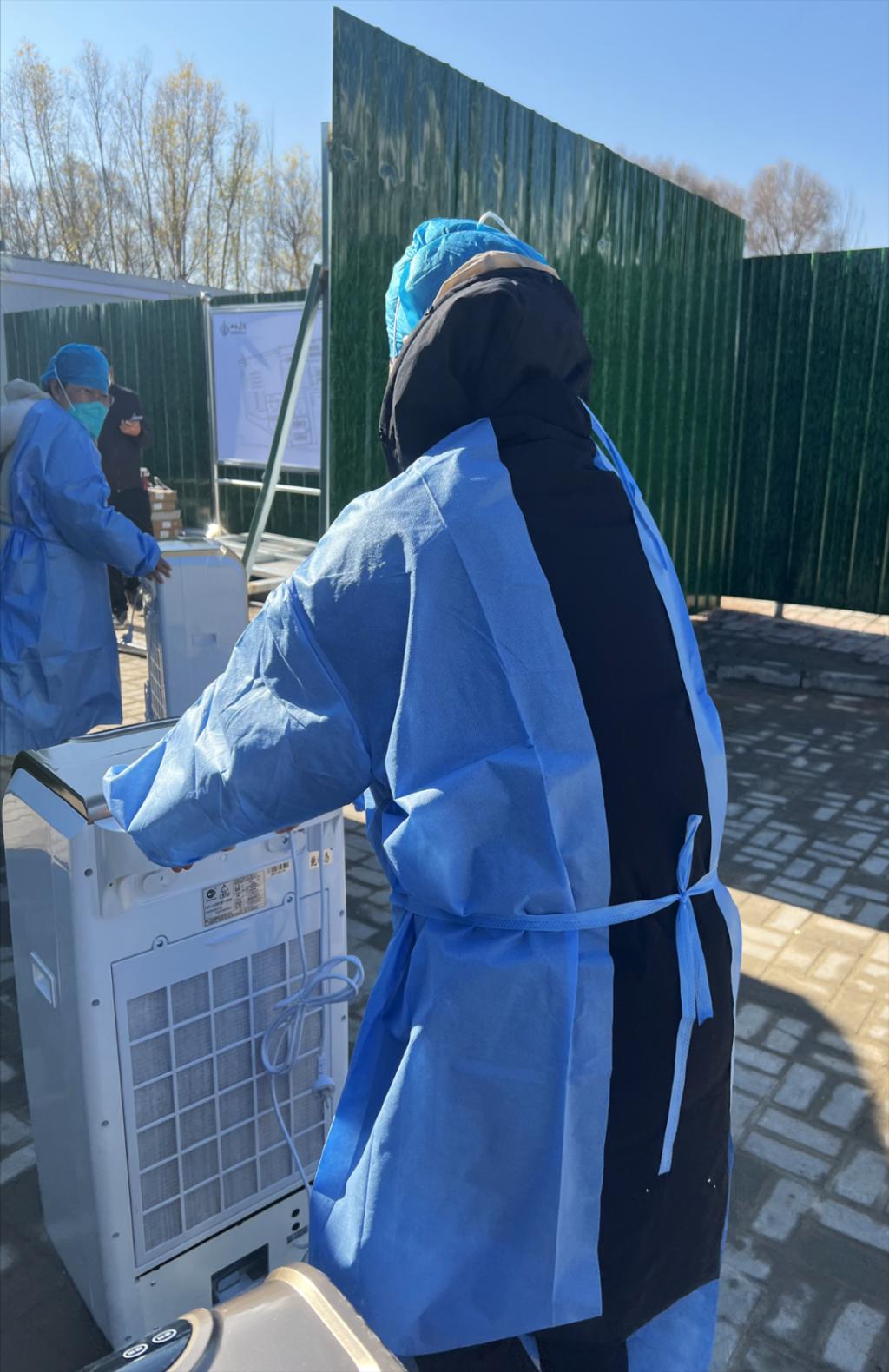 11月6日,从忻州市级第二方舱验收开始,高彦青就加入了抗击疫情的队伍中。从11月13日3、4舱启舱至18日最后一舱启舱,她见证了第二方舱每个舱从开启到运行的艰辛过程。她认为即使自己不再年轻,但依然勇敢地担起职责使命,是一件十分光荣、值得一生铭记的事情。