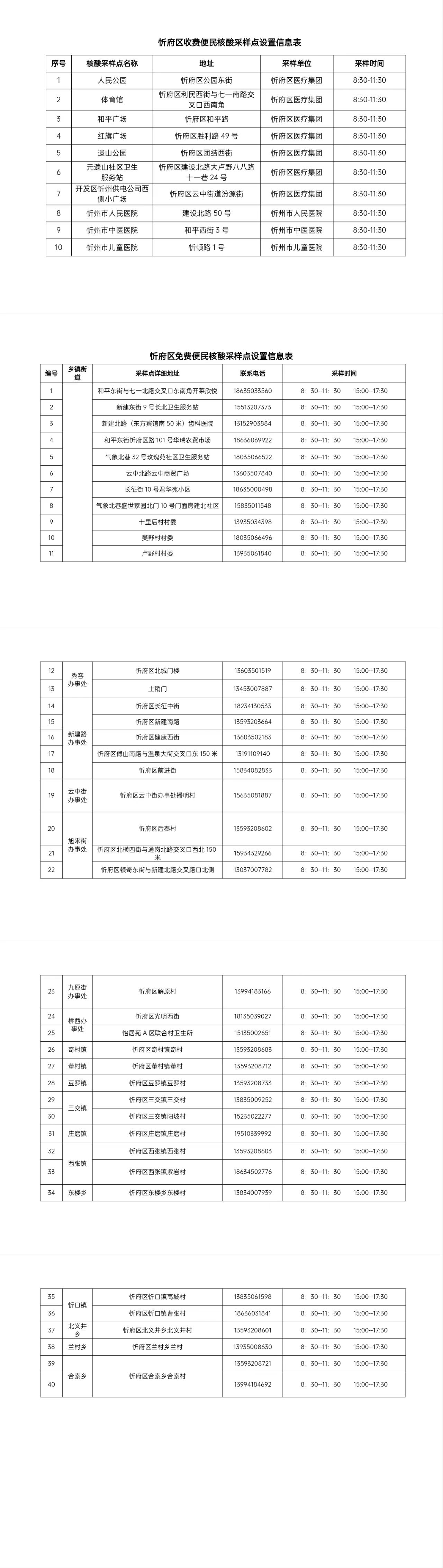附:10个收费便民核酸采样点,40个免费便民核酸采样点。