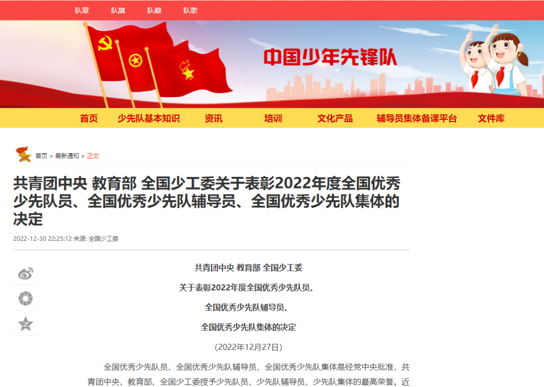 少先队员、少先队辅导员和少先队集体入选