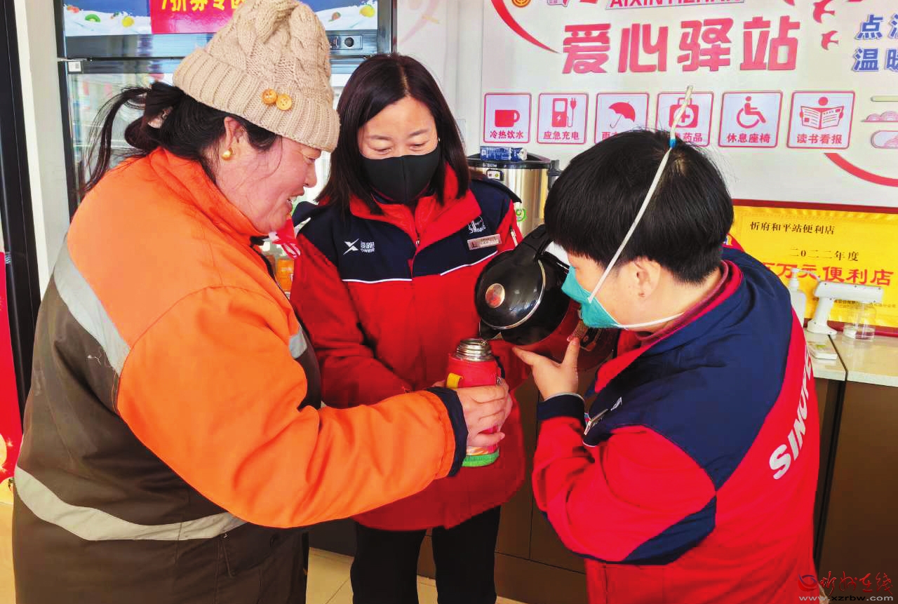 春节期间,来忻州古城的很多顾客来这里歇息喝水吃饭,环卫工人、交警、快递员等长时间在户外的“马路工作者”也来到这里休息,“爱心驿站”为他们提供了“洗洗脸、歇歇脚、热热饭、充充电、看看报”等贴心服务。中石化员工将进一步丰富“爱心驿站”服务功能,根据户外工作人员的实际需求不断升级,为更多有需要的人提供更有效和更有温度的帮助。