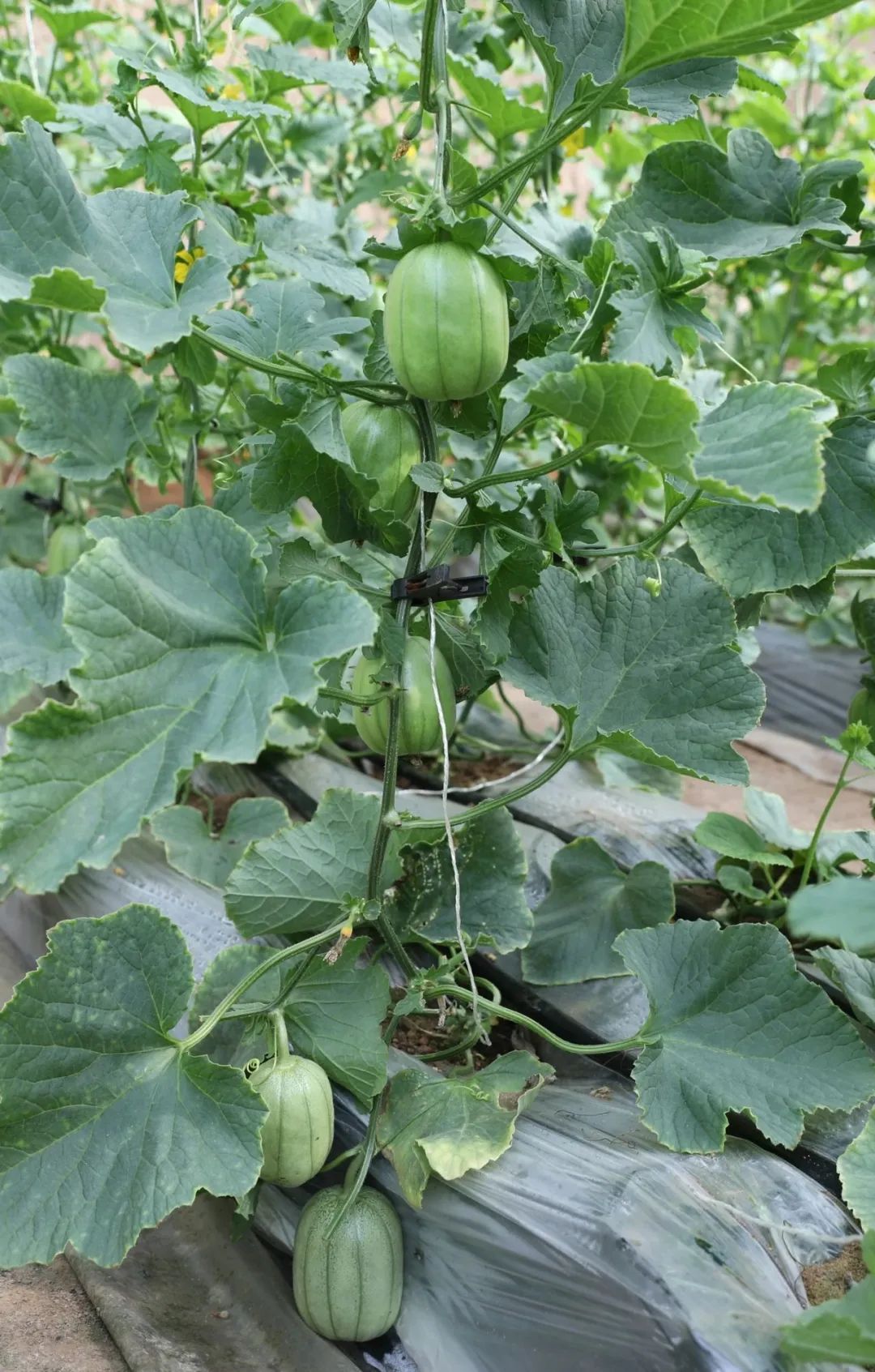 花盆不种花,拿来种瓜?没错,在旭来街道部落村农业科技园刘俊武的香瓜棚里,一盆盆“香瓜树”长势旺盛,数不清的小瓜倒挂在瀑布般的瓜藤上,飞舞的蜜蜂时而在瓜蒂间流连寻蜜。