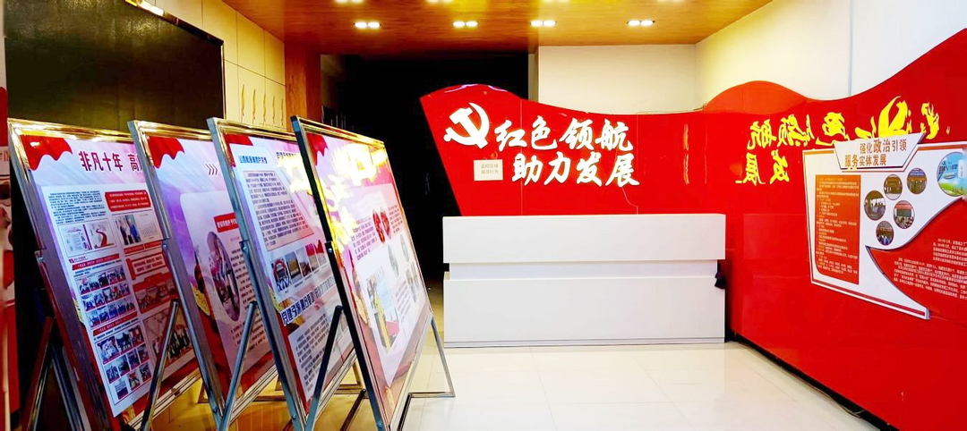 建党群服务中心,形成“面对面”指导中轴。打造全市首家 300 平方米党群服务中心,按照“麻雀虽小、五脏俱全”的思路,针对教育培训、管理服务、会议办公、区域联动等需求,设置党史文化长廊、党员宣誓区、精品微展厅、红色加油站、同心驿站、“雁阵”工作室、智慧金话筒7个模块,实行“9+4+1”(九大核心平台+四大服务体系+e 家大党建)运行机制,实现职能、资源、服务“三集聚”;培育出恒跃集团、天宝集团、昊坤集团、仁康仁爱医院等大批实体抓党建、发展靠党建的典型,激发出广大企业主、党员和职工认同党建、重视党建、大搞党建的浓厚氛围。