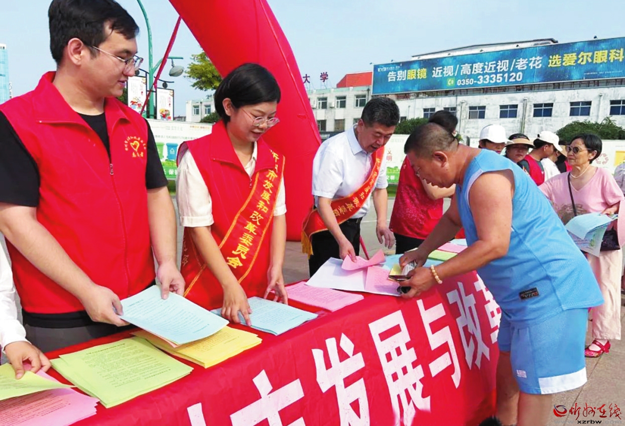 采取“线上+线下”的方式深入践行生态文明理念,增强全社会生态环保意识,倡导公众形成文明健康、绿色环保的生活方式。线上通过市发改委网站、微信公众号等平台发布活动相关内容;利用问卷星小程序开展“碳达峰、碳中和”认知调查。线下在体育广场组织工作人员向市民发放黄河流域生态保护、“双碳”、垃圾分类、塑料污染治理、节能减碳等宣传资料,让群众了解更多绿色低碳生活方式,引导大家做“绿水青山就是金山银山”理念的传播者、践行者,营造浓厚的生态环境保护氛围。 (记者王 阳)