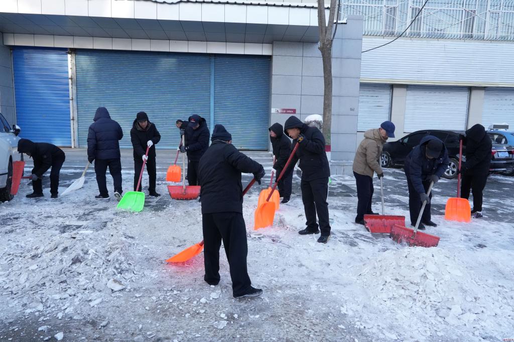 党员先行,发挥模范作用。清雪现场,各单位充分发挥党组织战斗堡垒作用和广大党员先锋模范作用,积极参与到所包责任区开展扫雪除冰行动,用实际行动践行“我为群众办实事,办好实事为群众”的理念。经过行人及车辆的踩碾,积雪结冰又厚又硬给清扫工作带来了极大困难。干部职工们发扬不怕苦、不畏难的精神团结协作,科学分组、分片包干、先敲后铲……大家挥舞着手中的工具,铲的铲、扫的扫、推的推,各种清扫工具轮番上阵,呈现出誓将“雪”战进行到底局面。