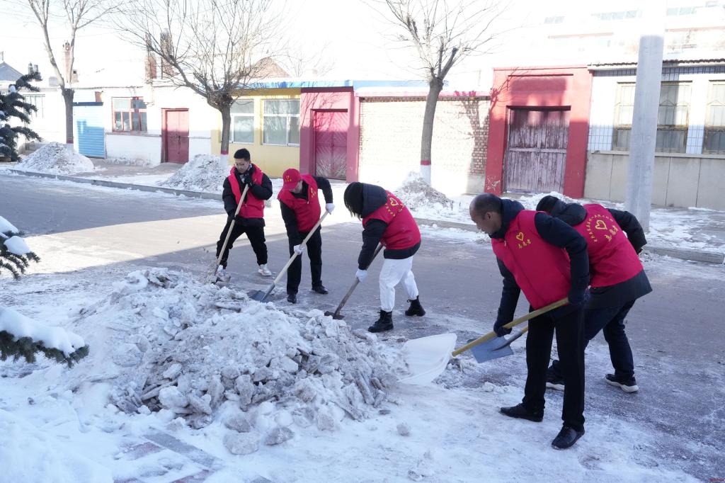 雪中志愿红,最是暖心人。县城大街小巷随处可见身穿“红马甲”的志愿者推开厚厚的积雪,为居民留下一条条“安全路”,虽然当地气温低达到零下二十多度,但大家不畏严寒铆足干劲,分工有序、默契配合,干得热火朝天。