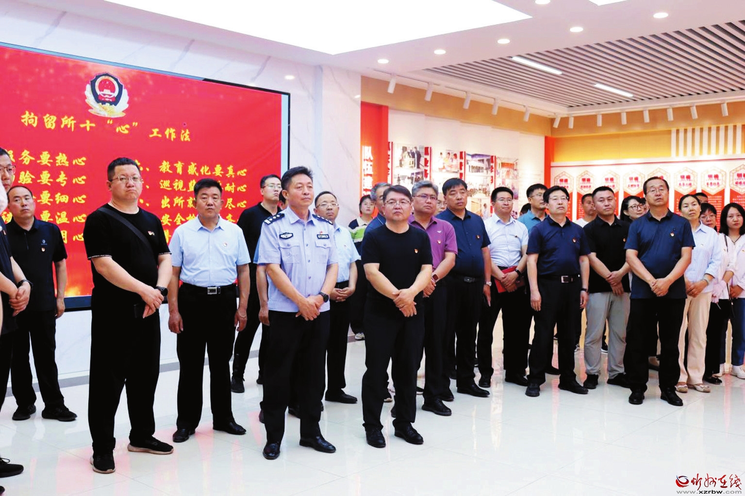 忻州市第一中学校党员干部在教育基地讲解员的带领下,依次对宪法普法大厅、法治文化长廊、拘留所各功能用房等处进行参观,详细了解拘留所的职能作用、日常工作、管理、教育方式方法,以及被拘留人员的一日生活制度,观看了专题警示教育片等。忻州市第一中学校党委书记、校长陈汉明还在基地内给党员干部上了一堂党课。