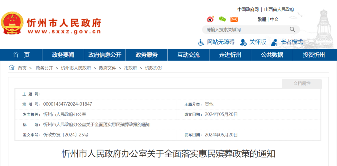 为进一步健全殡葬基本服务保障制度,全面落实惠民殡葬政策,促进我市殡葬基本公共服务均等化,根据《中共山西省委办公厅 山西省人民政府办公厅印发(关于加快推进全省殡葬综合改革促进殡葬事业发展的实施意见(试行)〉的通知》(晋办发〔2021〕15 号)精神,决定从2024年6月1日起,对全市居民基本殡葬服务费用实施减免,同时免除特殊贡献群体部分殡葬延伸服务费。现将有关事项通知如下。