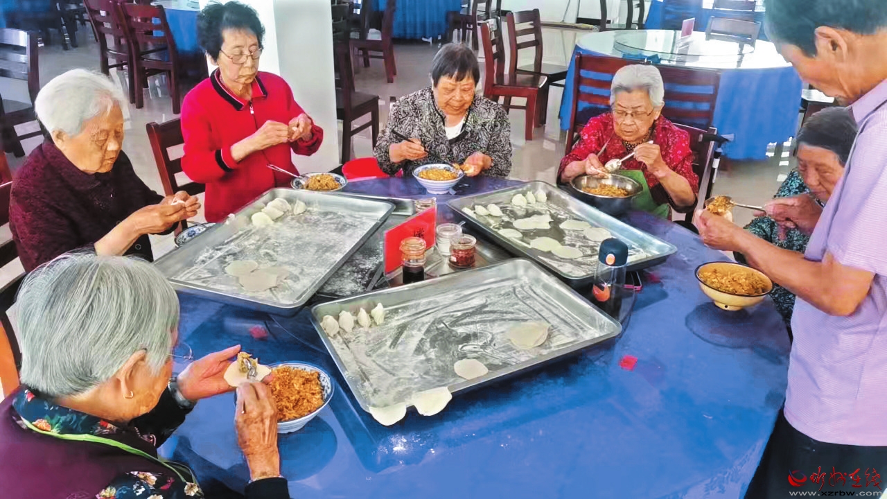 老年人其乐融融一起包饺子
