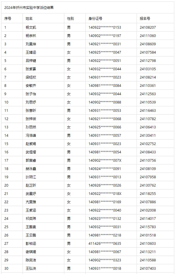 2024年忻州市实验中学派位结果