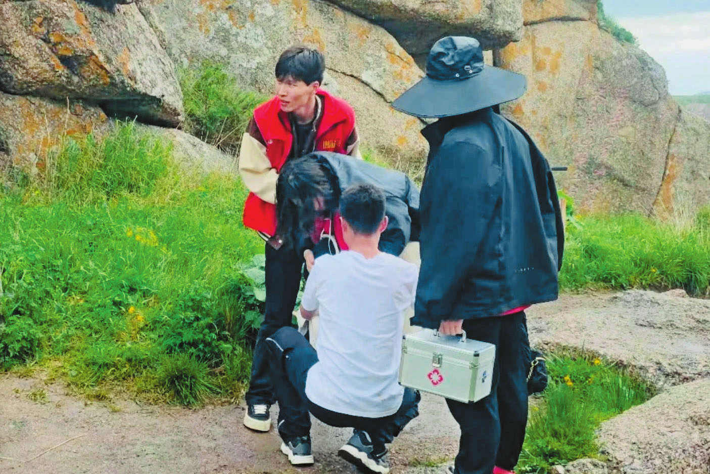 景区工作人员对扭伤游客及时救助
