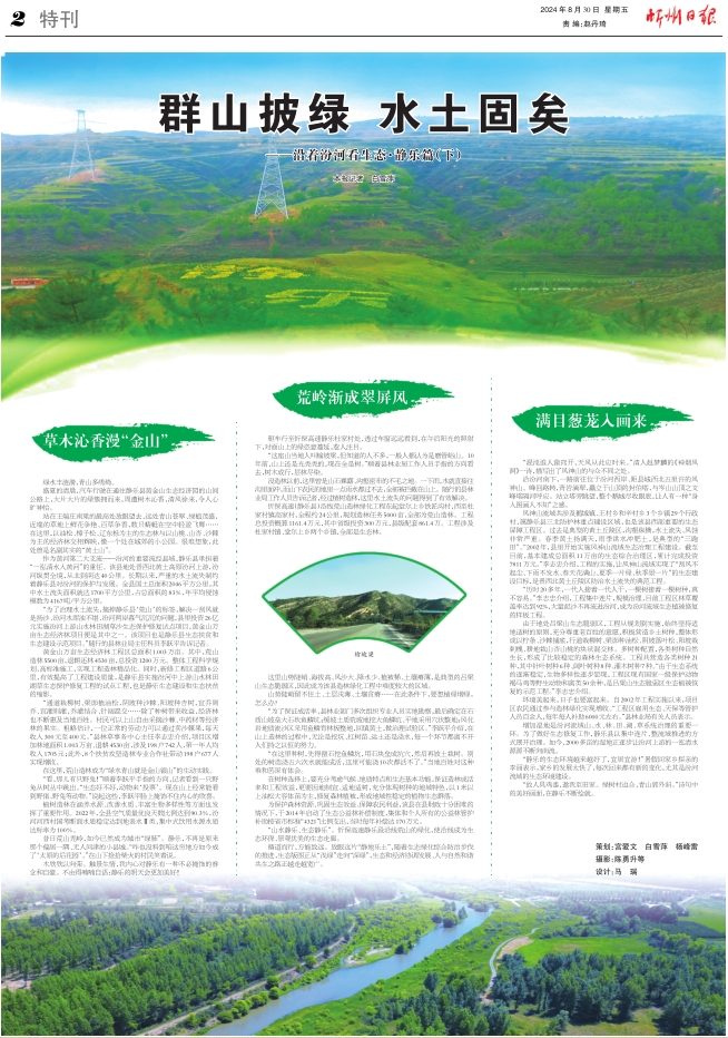 “历时20多年,一代人接着一代人干,一棵树接着一棵树种,真不容易。”李志忠介绍,工程集中连片,规模治理,目前工程区林草覆盖率达到92%,大量泥沙不再流进汾河,成为汾河流域生态植被修复的样板工程。