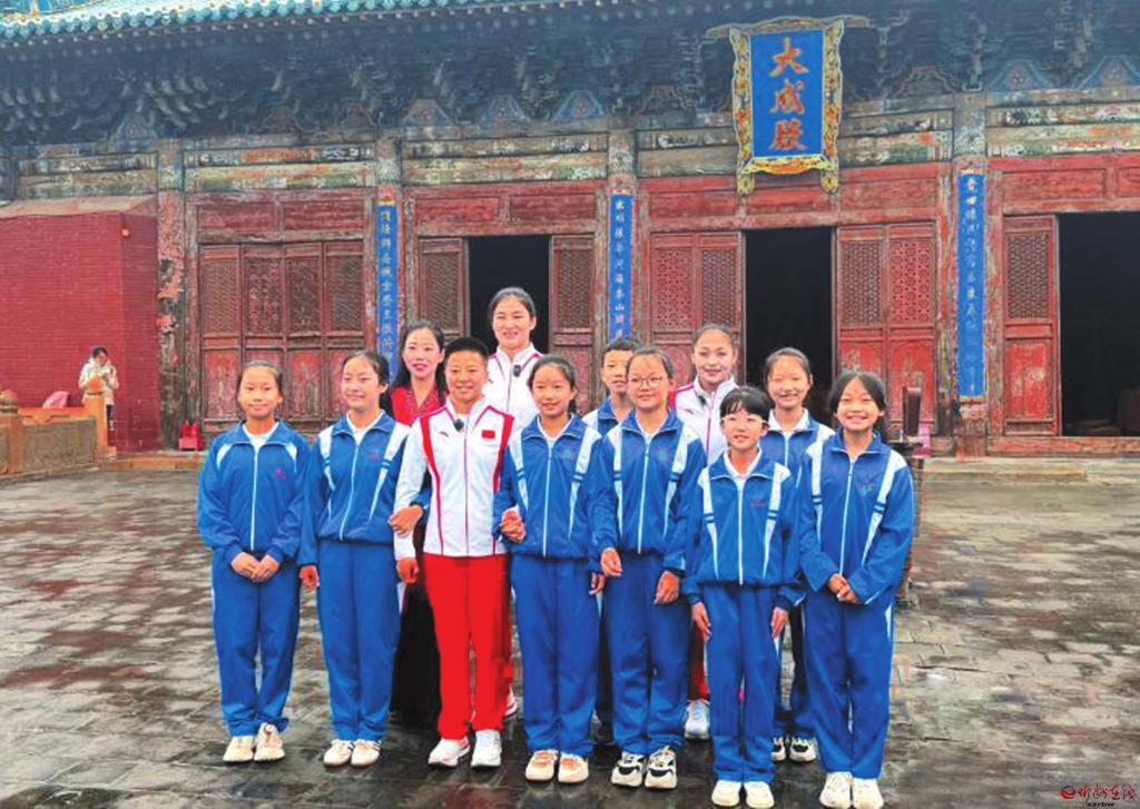 9月9日,“巴黎奥运冠军雁门关公益行”活动在国家历史文化名城代县启动。巴黎奥运会冠军李倩、常园、吴愉走进国保单位代州文庙和“万里长城第一楼”边靖楼,观古建、赏非遗;走进代县第四中学校,与学生们分享夺冠经历,传递榜样的力量。