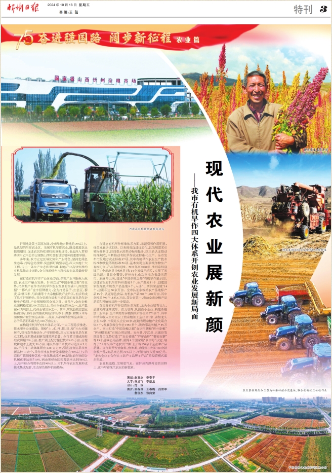 多年来,我市立足区域优势和产业特色,坚持走绿色生态路、打特色优质牌,突出抓好典型示范,深入实施十大工程,走出一条生产生态和谐相融、特色产业高效发展的有机旱作农业道路,全力推动忻州市现代农业高质量转型发展。