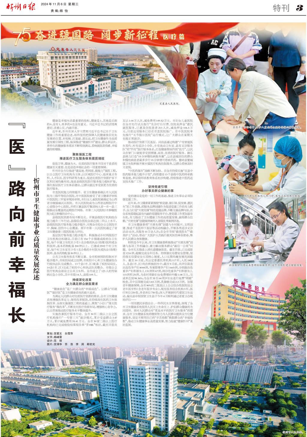 近年来,忻州市深入学习贯彻习近平总书记关于卫生健康工作的重要论述,始终坚持把保障人民健康放在优先发展的位置,补短板、打基础、谋长远,把卫生健康作为高质量发展引领性工程,纵深推进“健康忻州”建设,群众多层次、多样化的健康服务需求不断得到满足,看病就医获得感、幸福感持续增强。