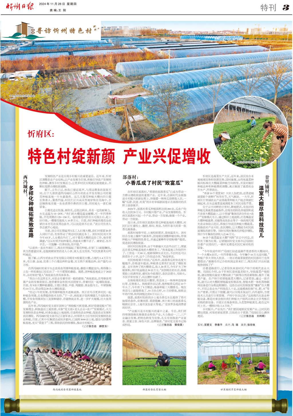 发展特色产业是实现乡村振兴的重要途径。近年来,忻府区调整农业产业结构,以产业发展为引领,积极引导农户发展特色种植,激发乡村发展活力,让更多村民实现就近就地就业,不断拓宽群众增收致富路。