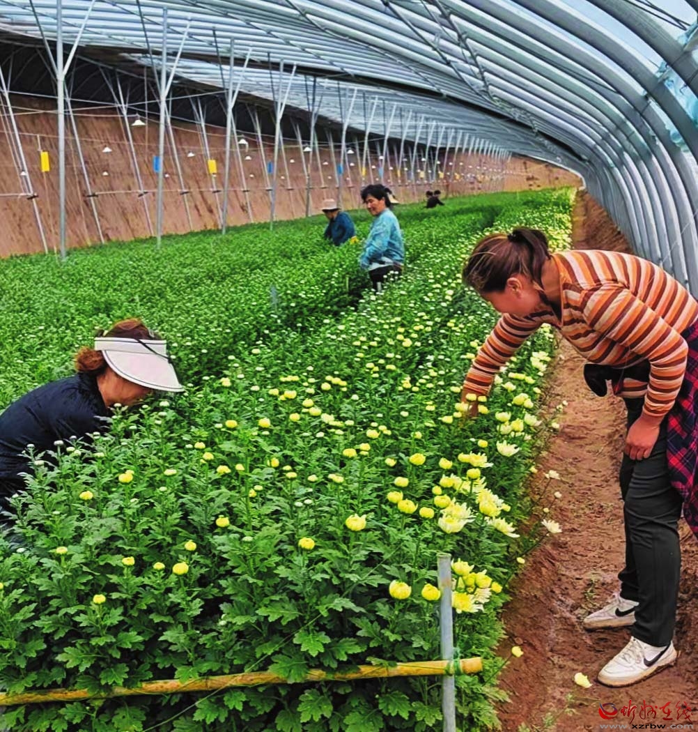 当前,该公司长期雇用5名工人打理大棚,农忙时需要20多人同时干活,有效带动了周边村民就近务工。该村村民刘大爷今年65岁,儿女都在外打工,对于菊花大棚的这份工作,他非常满意:“自从村里开始种菊花,我就来大棚干活了。离家近,也不辛苦,一天能赚一百多块钱,很不错。”