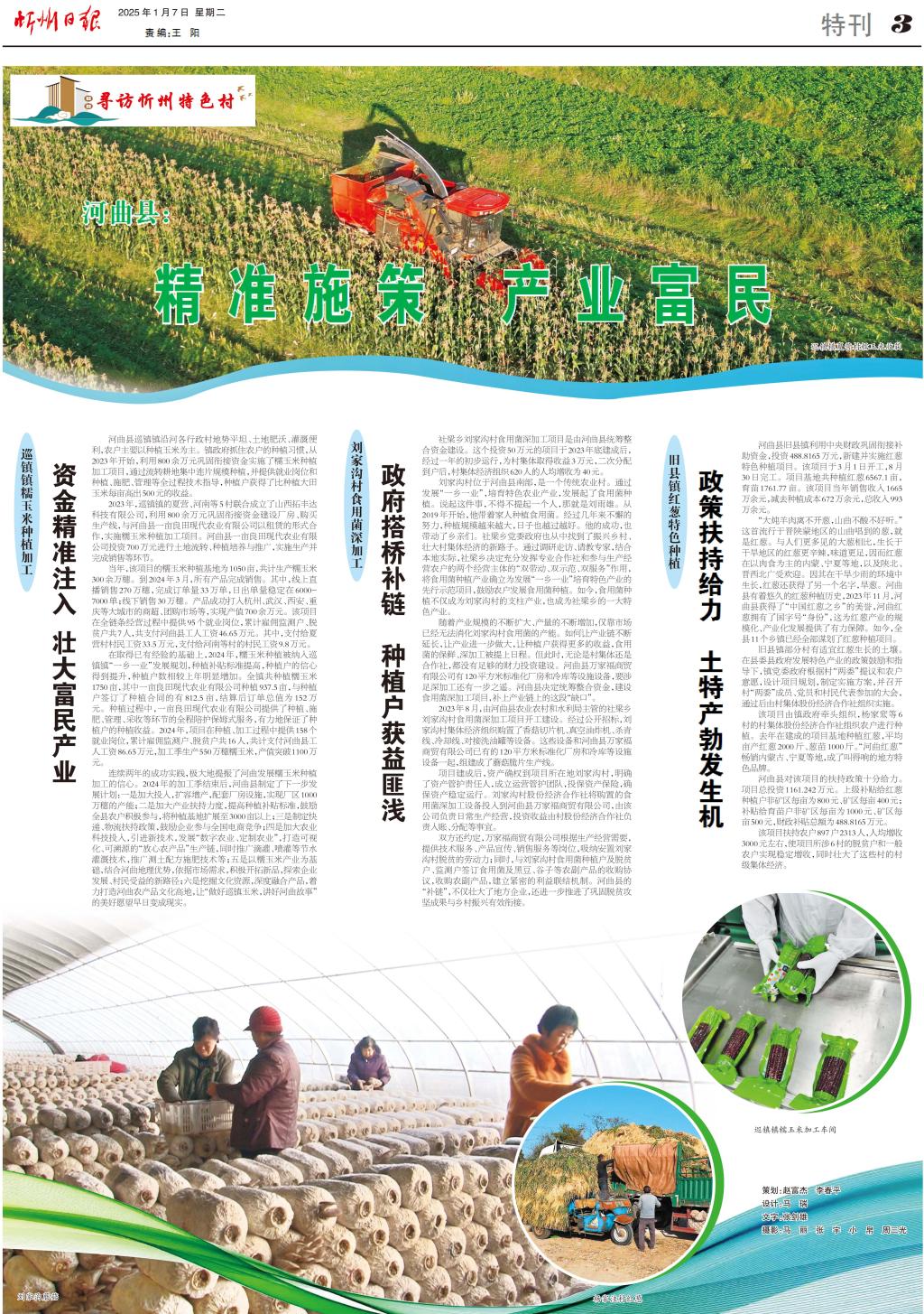 双方还约定,万家福商贸有限公司根据生产经营需要,提供技术服务、产品宣传、销售服务等岗位,吸纳安置刘家沟村脱贫的劳动力;同时,与刘家沟村食用菌种植户及脱贫户、监测户签订食用菌及黑豆、谷子等农副产品的收购协议,收购农副产品,建立紧密的利益联结机制。河曲县的“补链”,不仅壮大了地方企业,还进一步推进了巩固脱贫攻坚成果与乡村振兴有效衔接。