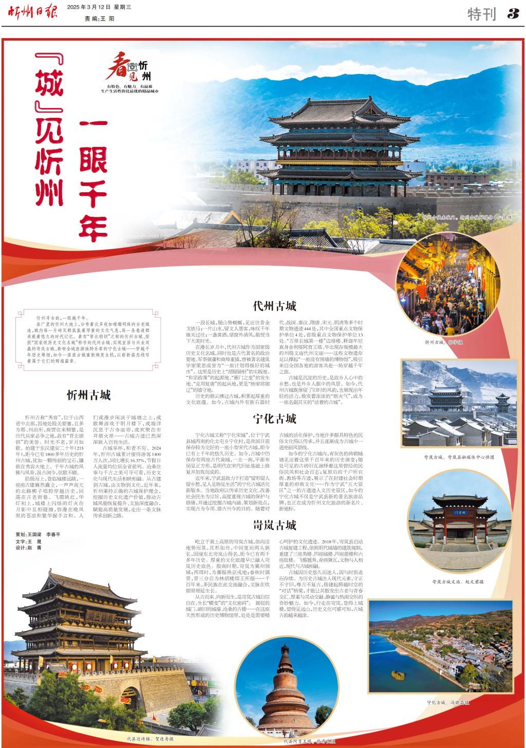 在广袤的忻州大地上,分布着众多宛如璀璨明珠的古老城池,城内每一片砖瓦都氤氲着厚重的文化气息,每一条巷道都承载着悠久的时代记忆。素有“晋北锁钥”之称的忻州古城、荣获“国家级历史文化名城”称号的代州古城、实现宜居与兴业双赢的岢岚古城、奏响全域旅游独特乐章的宁化古城……穿越千年历史烽烟,如今一座座古城重新焕发生机,以崭新姿态续写着属于它们的辉煌篇章。