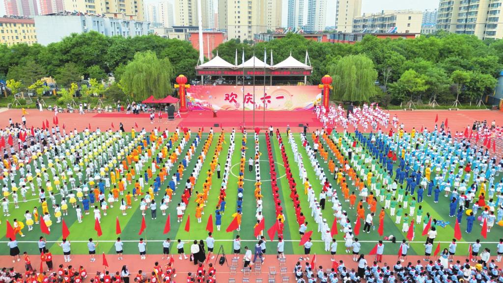 5月30日,忻州市和平小学全体师生欢聚一堂,载歌载舞,通过合唱、舞蹈、武术、团体操、模特表演等形式庆祝属于自己的节日——“六一”国际儿童节。