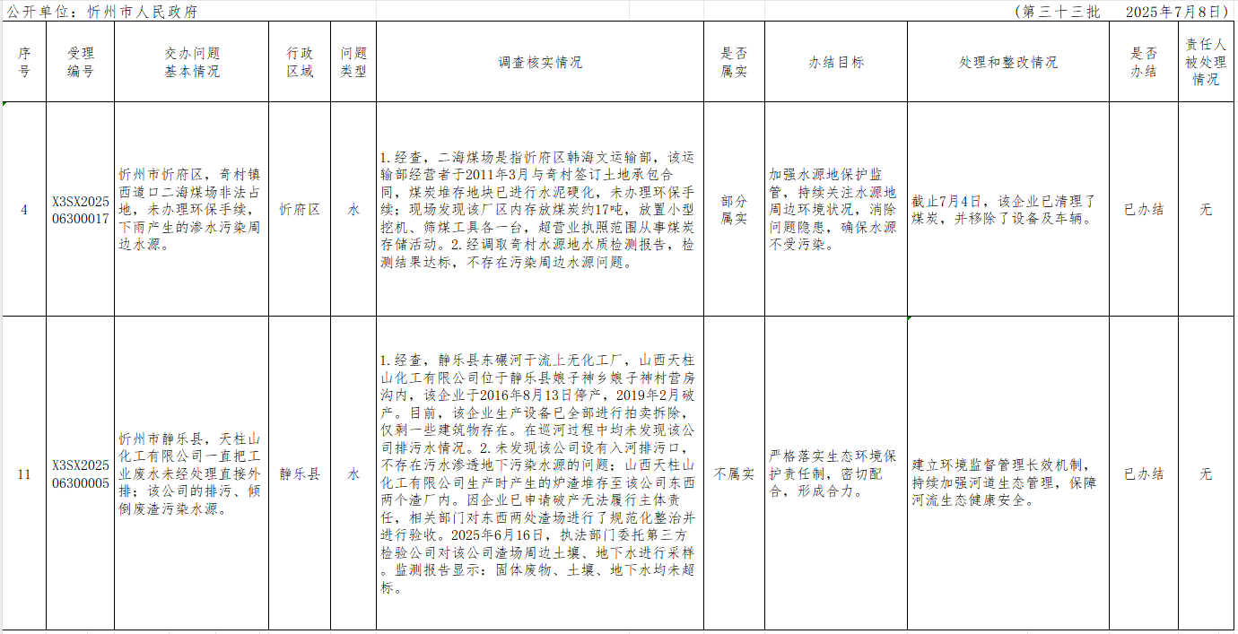 中央生态环境保护督察组群众信访举报转办和边督边改公开情况一览表(第三十三批)