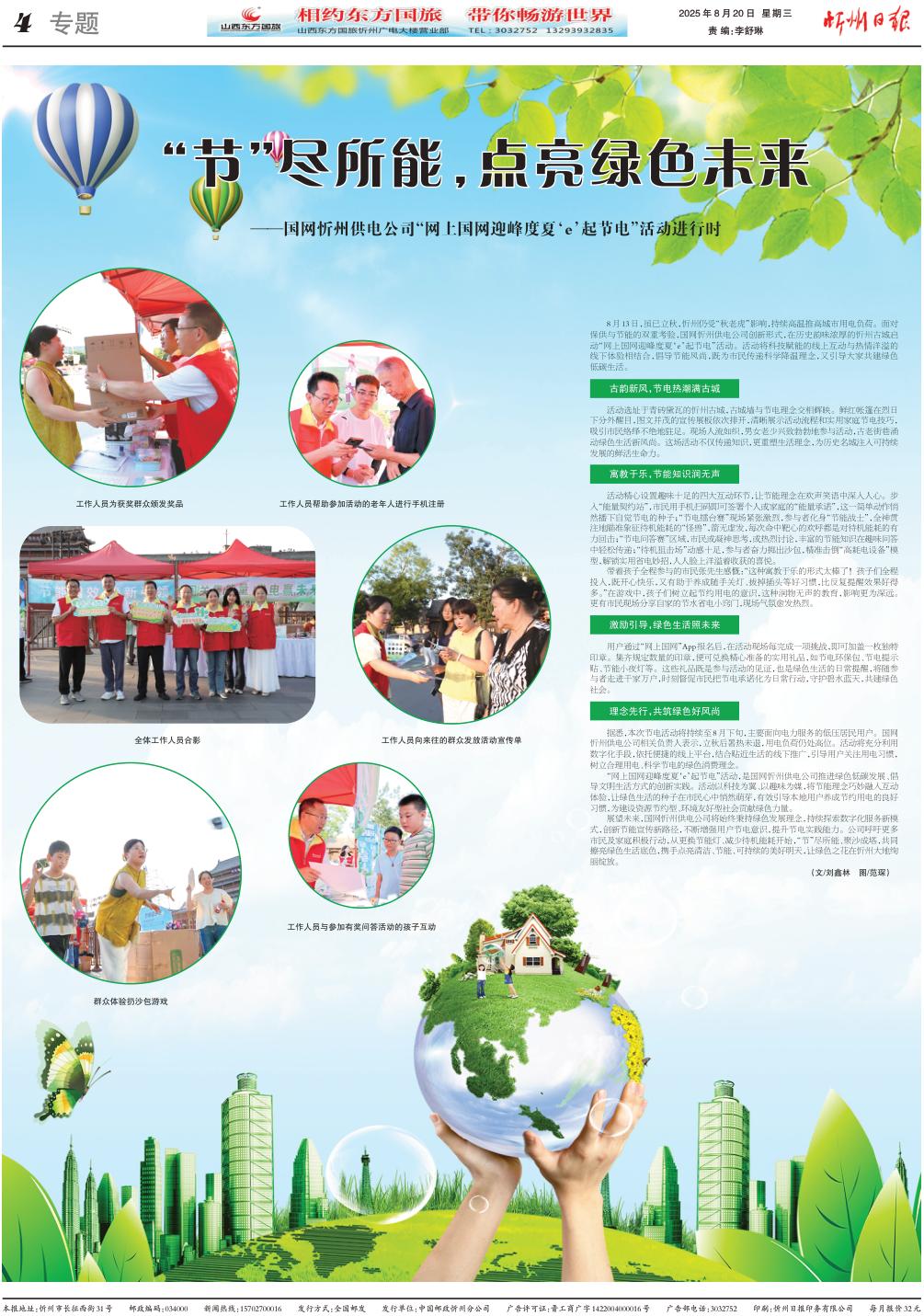“网上国网迎峰度夏‘e’起节电”活动,是国网忻州供电公司推进绿色低碳发展、倡导文明生活方式的创新实践。活动以科技为翼、以趣味为媒,将节能理念巧妙融入互动体验,让绿色生活的种子在市民心中悄然萌芽,有效引导本地用户养成节约用电的良好习惯,为建设资源节约型、环境友好型社会贡献绿色力量。