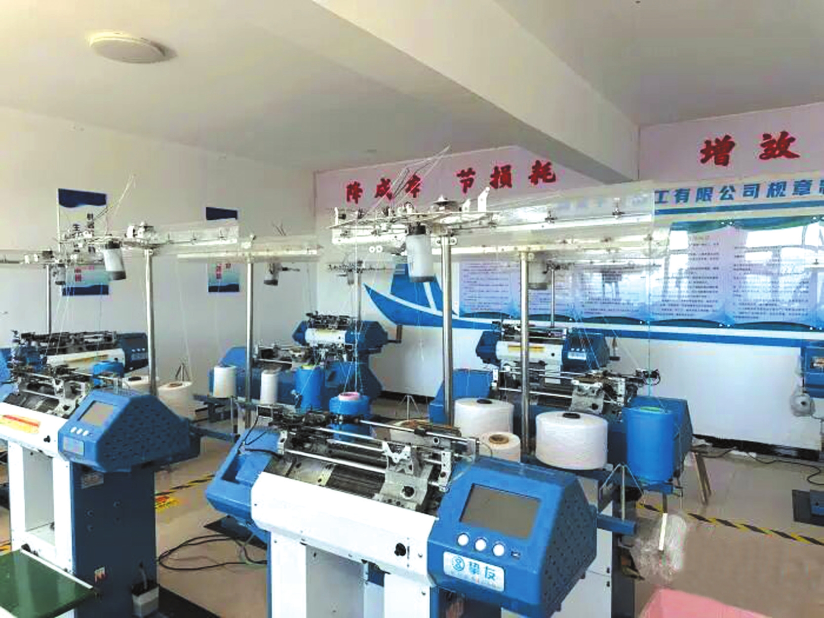 5日,笔者走进车间内,全自动生产机高速运转生产手套。据了解,营盘梁村利用闲置校舍建成手套厂,初期配置15台半自动低速手套编织机、2台全自动高速手套编织机,2024年产量达15万副。