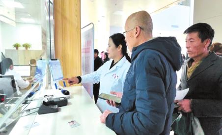 医院工作人员引导就诊病人完成注册流程