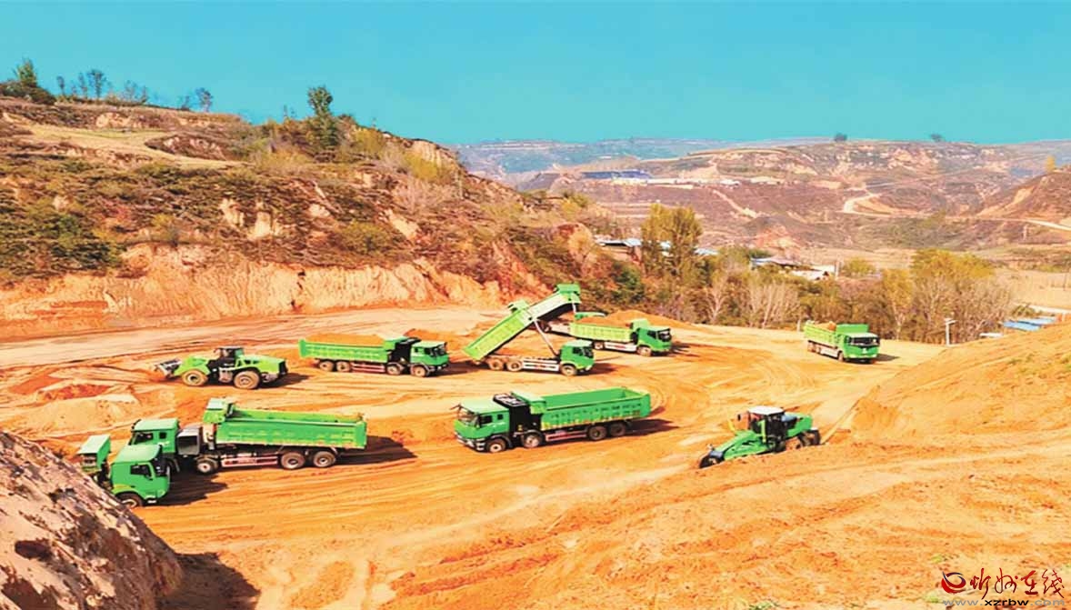 一辆辆新能源车穿行于省道247线项目建设现场。杨金锁摄