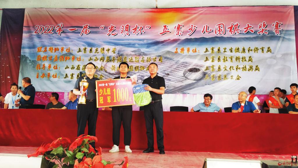这次大奖赛由五寨县围棋协会主办,五寨县光明中学冠名赞助,山西同庆丰煤炭运销有限公司赞助支持。开幕式上,山西省围棋协会向五寨县围棋协会捐赠了价值8500元的智能一体机一台,忻州市围棋协会向五寨县围棋协会颁发了“立足五寨沃土,培养围棋人才”的奖牌,并捐赠了价值7200元的高档围棋凳40个。山西省围棋协会向五寨县光明中学捐赠国学经典书籍一套,山西人民出版社社长姚军(围棋5段)向大赛组委会赠送书法作品一幅。