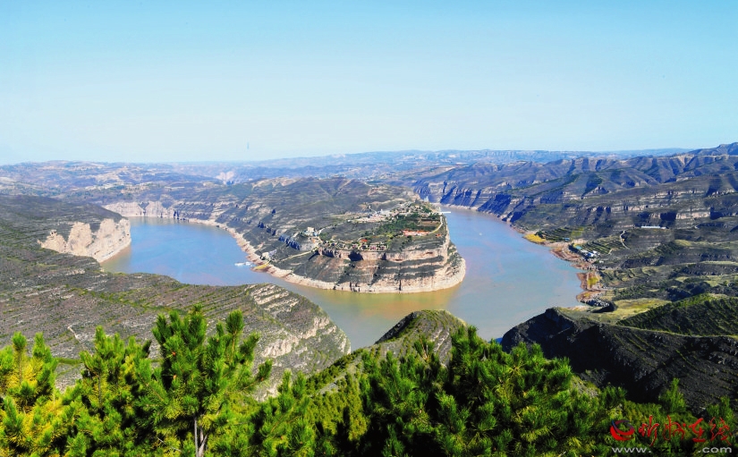 黄河至此,被大山阻隔,绕山而行,画出了“S”形大弯。