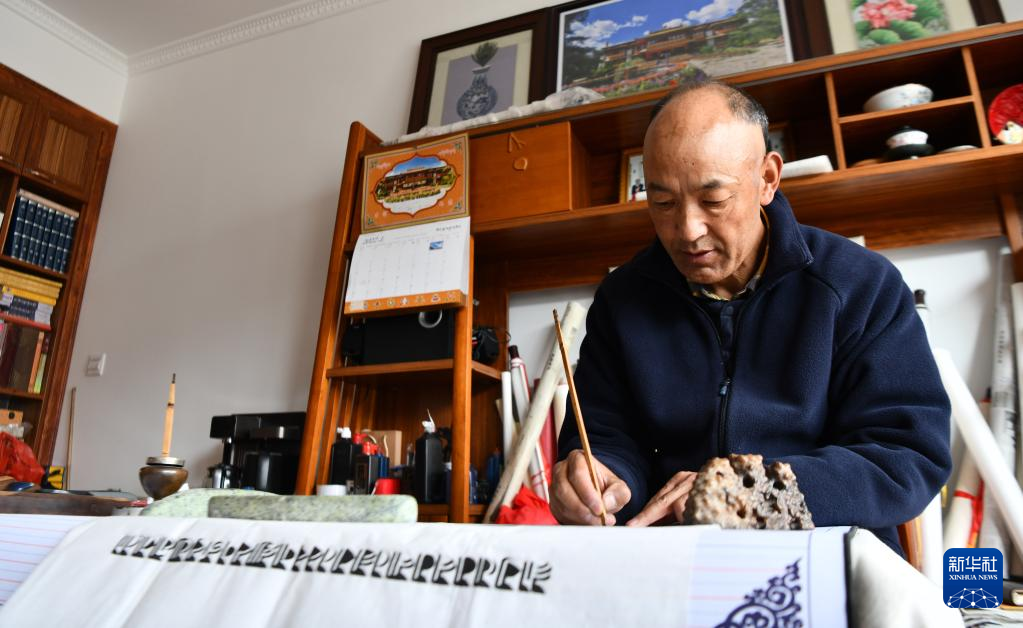 完成贝叶经普查和修复工作后,久米次成仍躬耕古籍修复事业,坚持不懈完成了多部藏文文献的修缮普查任务。2017年,久米次成入选第一批“西藏工匠”。新华社记者 晋美多吉 摄