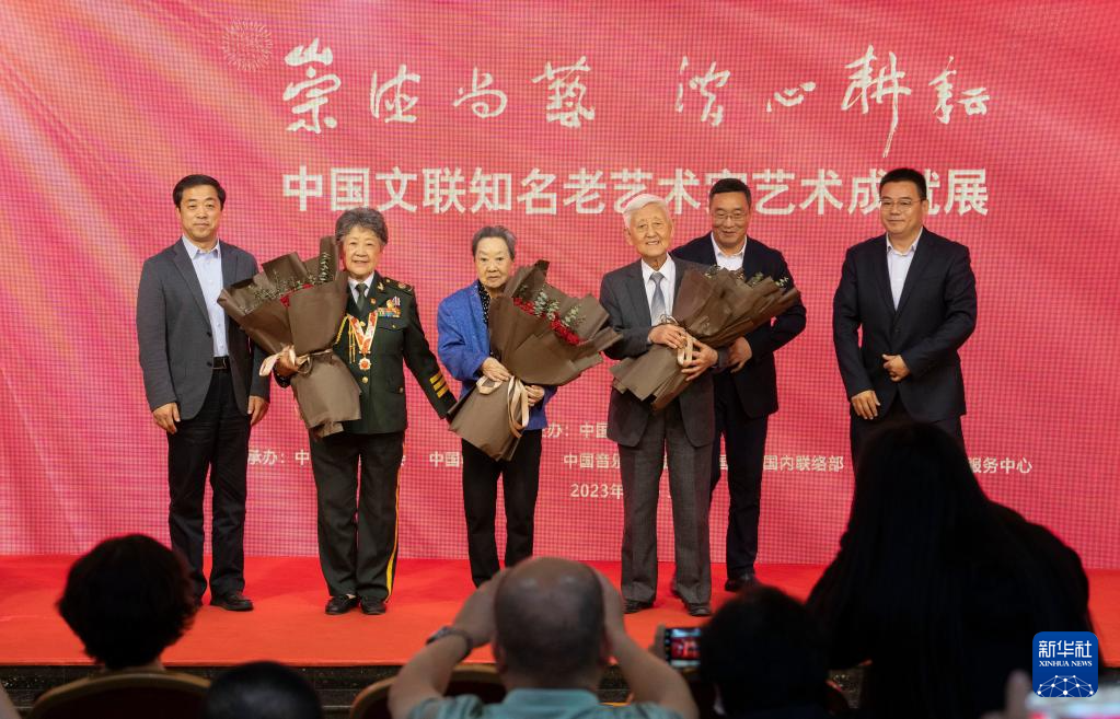 当日,第六届中国文联知名老艺术家艺术成就展在中国文艺家之家展览馆开幕。新华社记者 才扬 摄