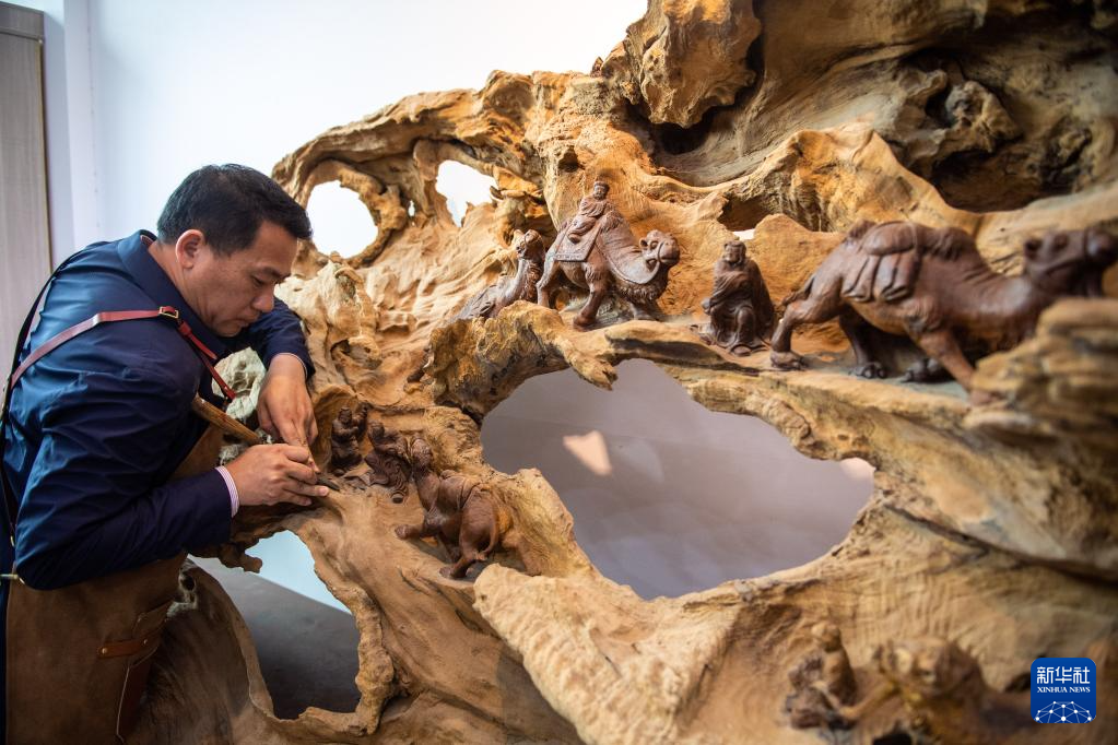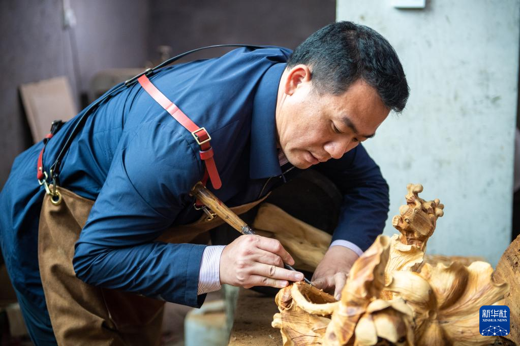 洞口木雕已被正式列入湖南省省级非物质文化遗产名录,木雕产品远销70多个国家和地区。新华社记者 陈思汗 摄